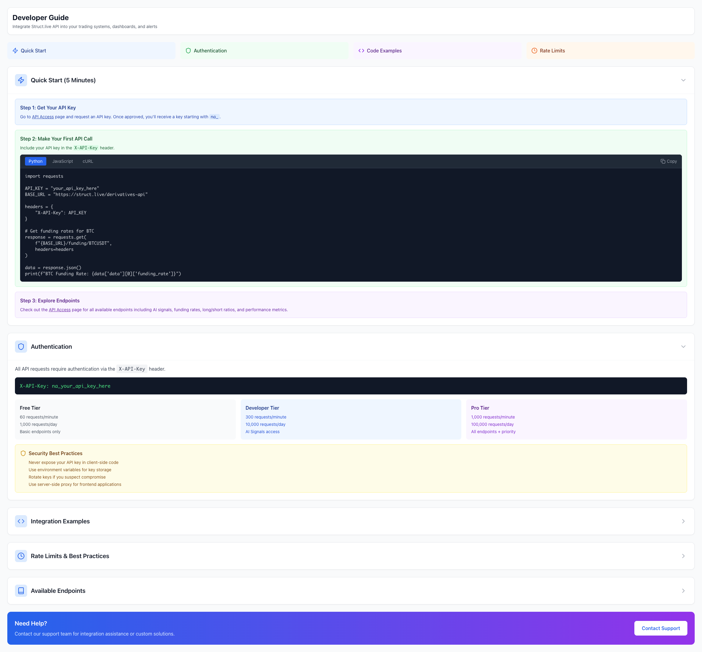 Struct.live는 암호화폐 거래소 API와 연동하여 자동 트레이딩 전략을 실행할 수 있도록 설계되었습니다.